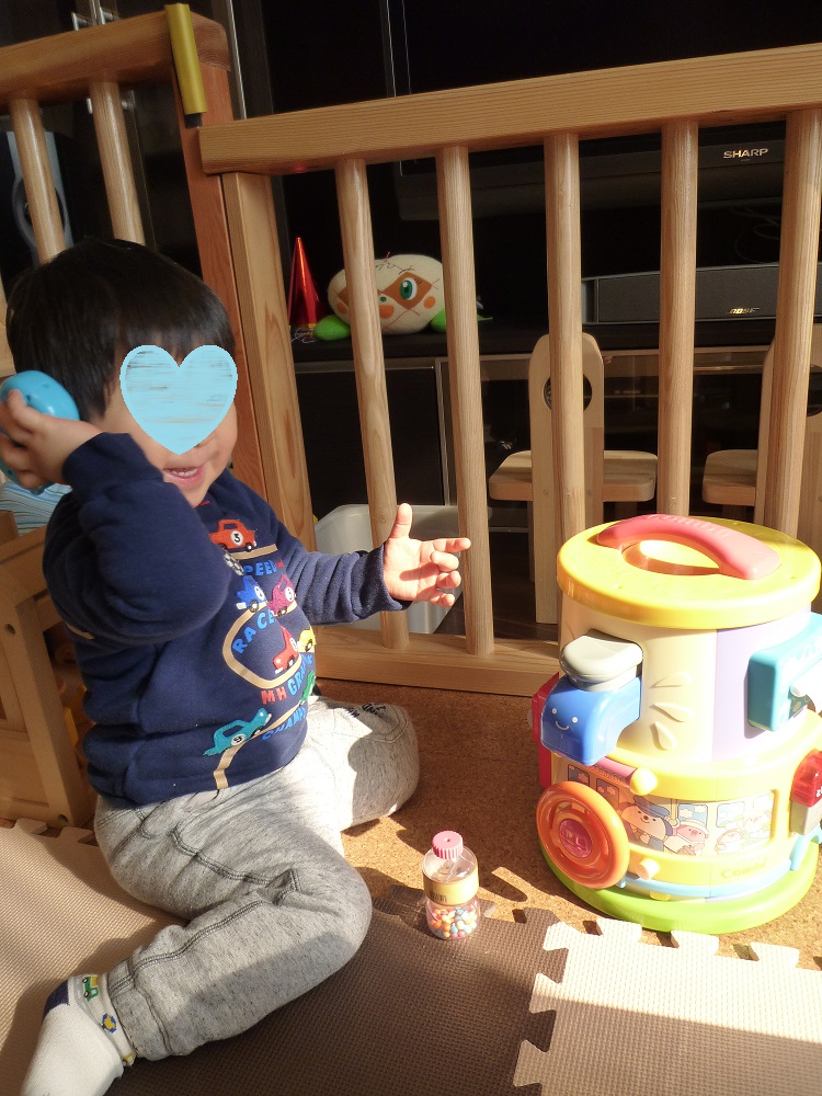 音の出るおもちゃに付いている電話をとって嬉しそう♪