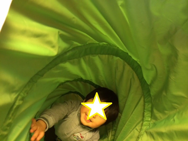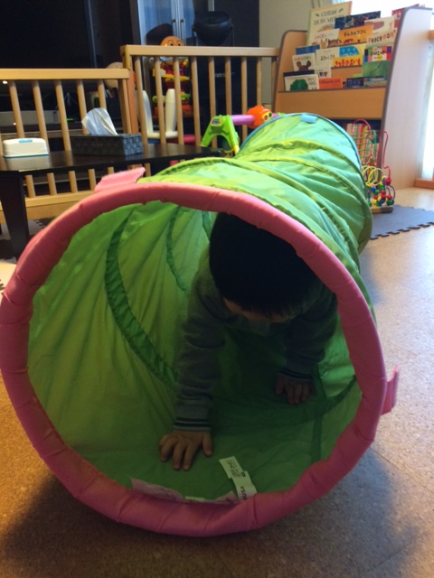 久しぶりにトンネルの登場♪あっちから、こっちから何度もハイハイで行ったり来たり。