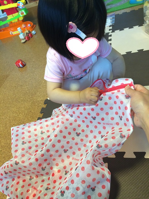 一生懸命しているのはファスナー!子どもって結構好きですよね♪開けてはいけないところをあけるのではなく、あえて遊びにしてみました☆