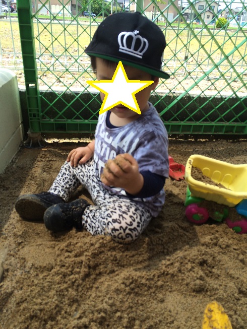 心地よく砂場で遊びました♪というか、砂を握ったり運んだりして、まみれております…
