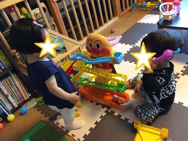 一緒に遊ぼう!まずはアンパンマンを囲んで、どなたかに電話されています!笑
