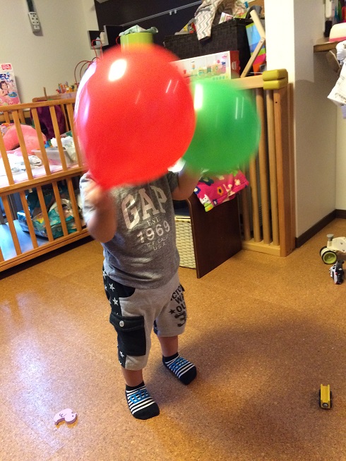写真にはありませんが、昨日は2個でいけた風船も、今日は5個もふくらませ、酸欠状態のワタシ…。