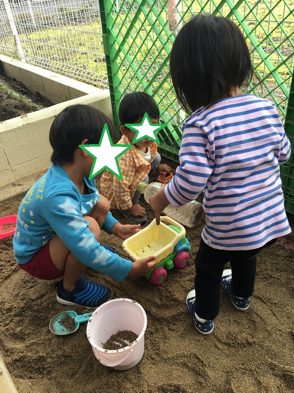 相変わらず人気の砂場遊び♪